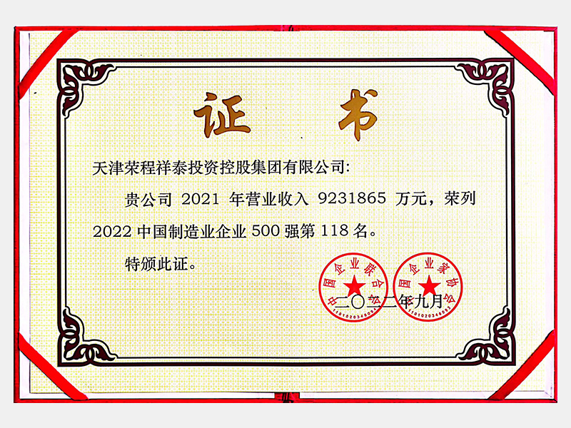 中國制造業(yè)企業(yè)500強第118名