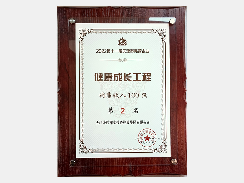 2022第十一屆天津市民營企業(yè)健康成長工程銷售收入100強(qiáng)第2名