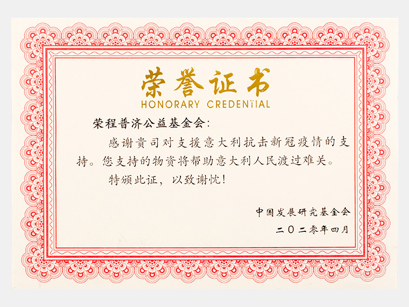 支援意大利抗擊新冠疫情支持-感謝證書
