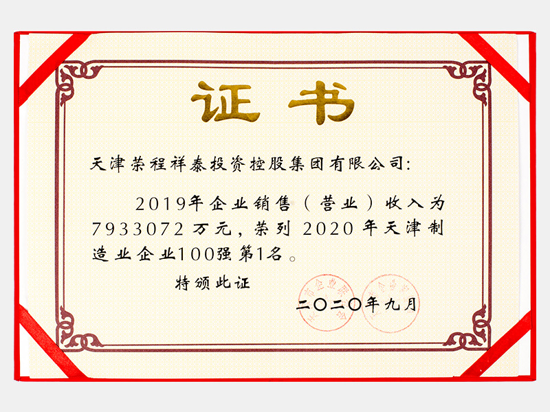 2019年企業(yè)銷售(營業(yè))收入為7933072萬元,榮列2020年天津制造業(yè)企業(yè)100強第1名