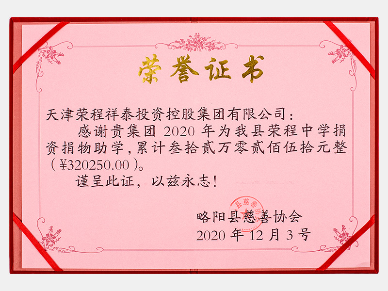 2020年為我縣榮程中學(xué)捐資捐物助學(xué)累計(jì)叁拾貳萬零貳佰伍拾元整(320250元)