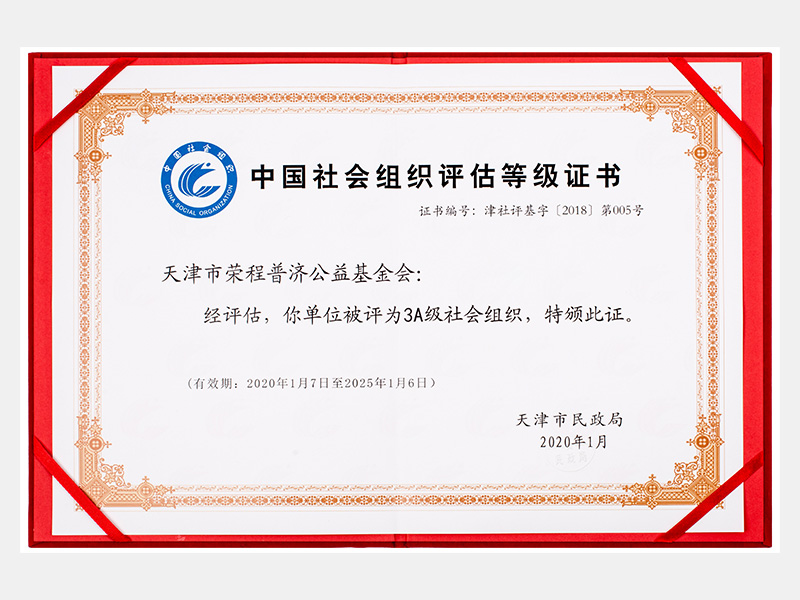 中國(guó)社會(huì)組織評(píng)估等級(jí)證書(shū)-3A級(jí)社會(huì)組織