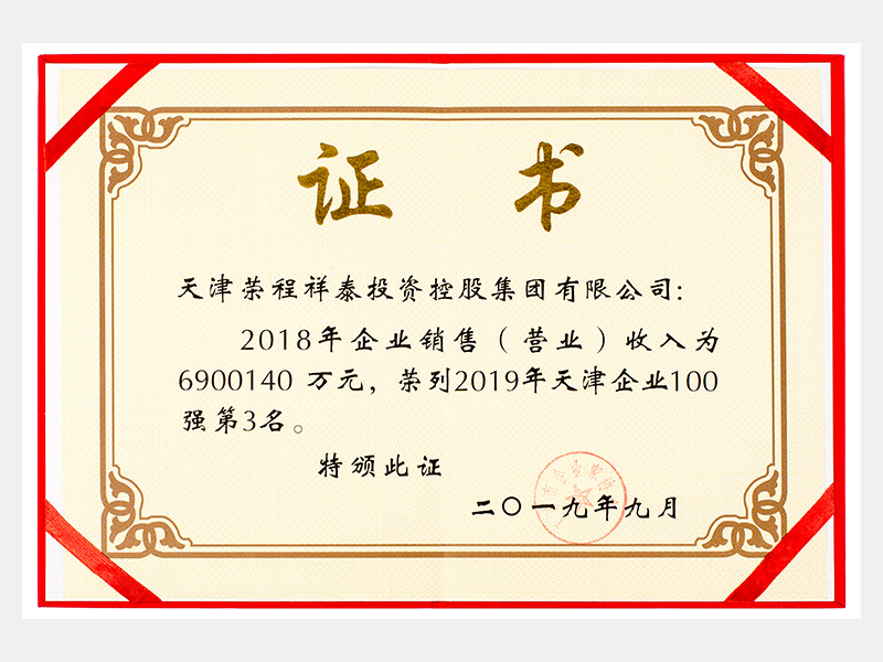 2018年企業(yè)銷售(營業(yè))收入為6900140萬元,榮列2019年天津企業(yè)100強第3名。