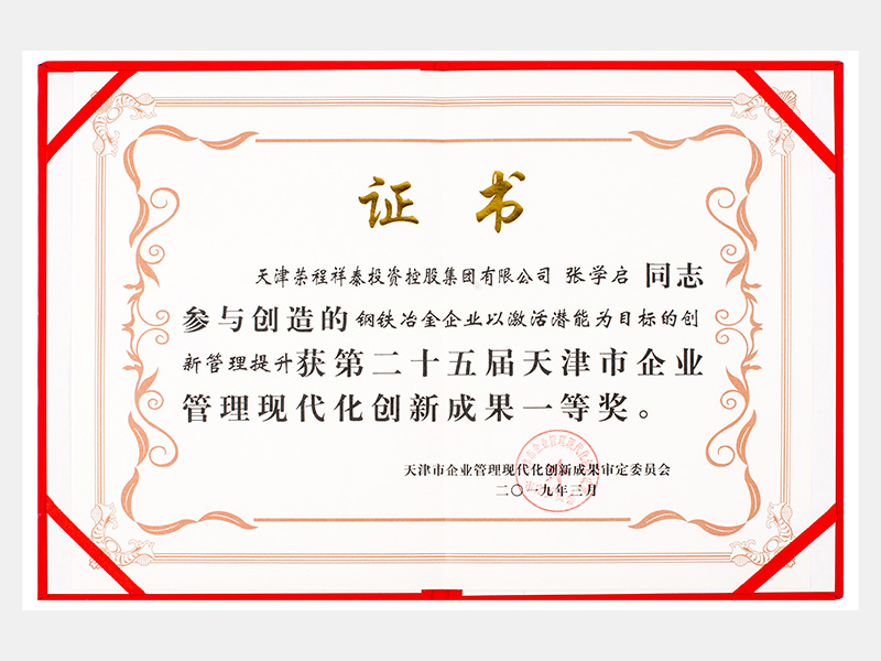 張學啟同志參與創(chuàng)造的鋼鐵冶金企業(yè)以激活潛能為目標的創(chuàng)新管理提升獲第二十五屆天津市企業(yè)管理現(xiàn)代化創(chuàng)新成果一等獎。