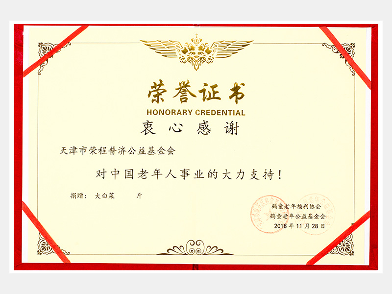 “購(gòu)滯銷(xiāo)蔬菜捐贈(zèng)養(yǎng)老院福利院活動(dòng)”鶴童老年福利協(xié)會(huì)榮譽(yù)證書(shū)(慈善)