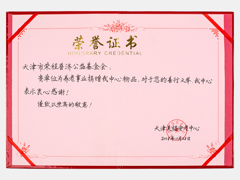 “購(gòu)滯銷蔬菜捐贈(zèng)養(yǎng)老院福利院活動(dòng)”天津美福安老中心榮譽(yù)證書(shū)(慈善)